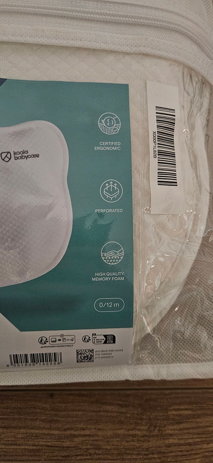 .Oreiller à mémoire de formes pour bébé + 2 taies d'oreiller . Pour la plagiocephalie, aide à prévenir et traiter la tête plate . Ne contient aucune substance toxique Très bon état, peu servi Koala babycare