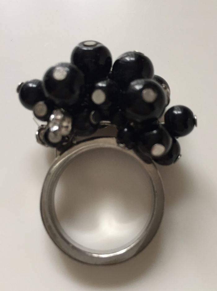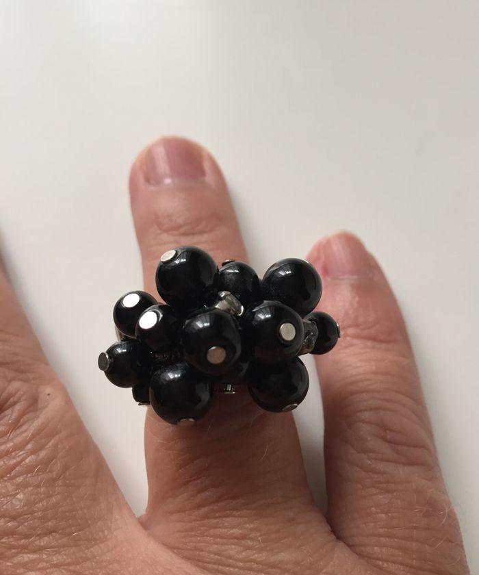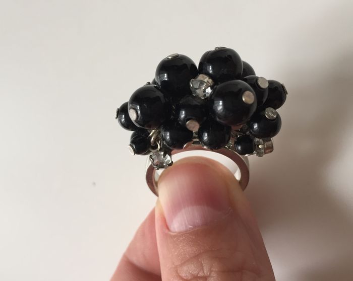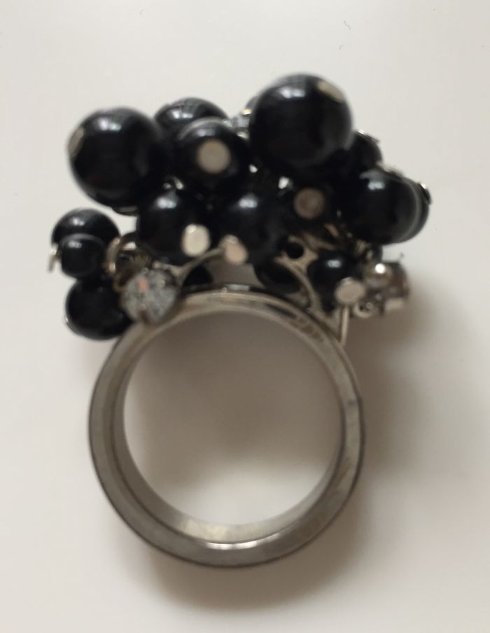 bague fantaisie grappe perles noires et strass - photo numéro 1