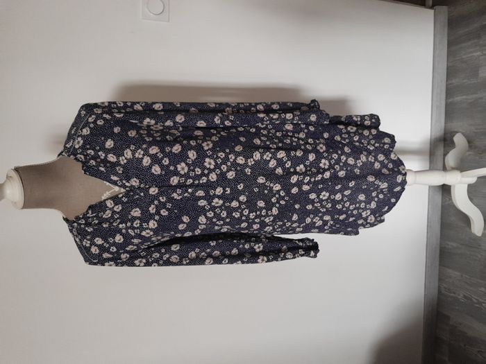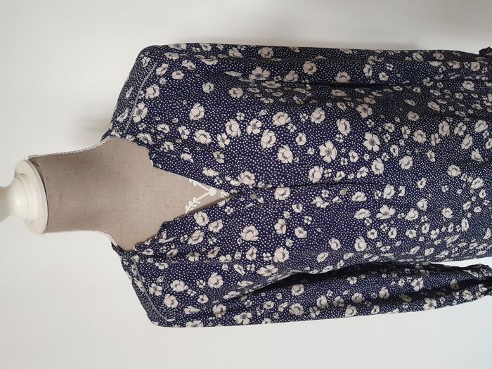 Robe, imprimé, manche longue ou 3/4, col V, bouton devant et sur les manche Longueur : 90cm Aiss / Aiss : 46cm Matière : 100 % Viscose Marque : Grain de Malice