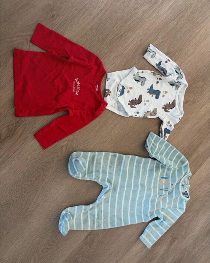 Voir les deux photos ( 5 vêtements au total ) 1 pyjama 2 teee shirt manche longue 1 body 1 pantalon jogging