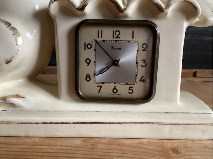 Horloge faïence artdeco marque scout (une marque de la manufacture d'horloge de béthune). Longueur 40 cm Largeur 9 cm À restaurer 2 petits manques d’email