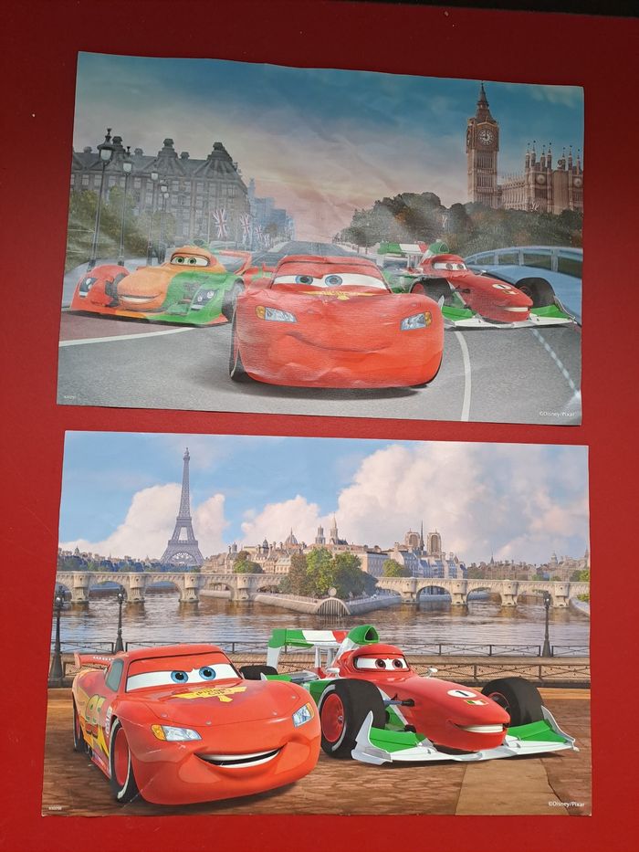 Comprends 2 puzzles et 2 mini posters . Complet . La boite est abimé et écrit ..voir derniere photo . Pas de pieces cassées , usures normal des pieces .