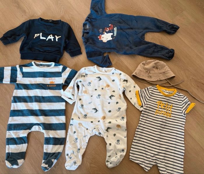 Vêtement tailles 6 mois 5 vêtements +1 chapeau 3 pyjama 1 pull 1 barboteuse 1 chapeau