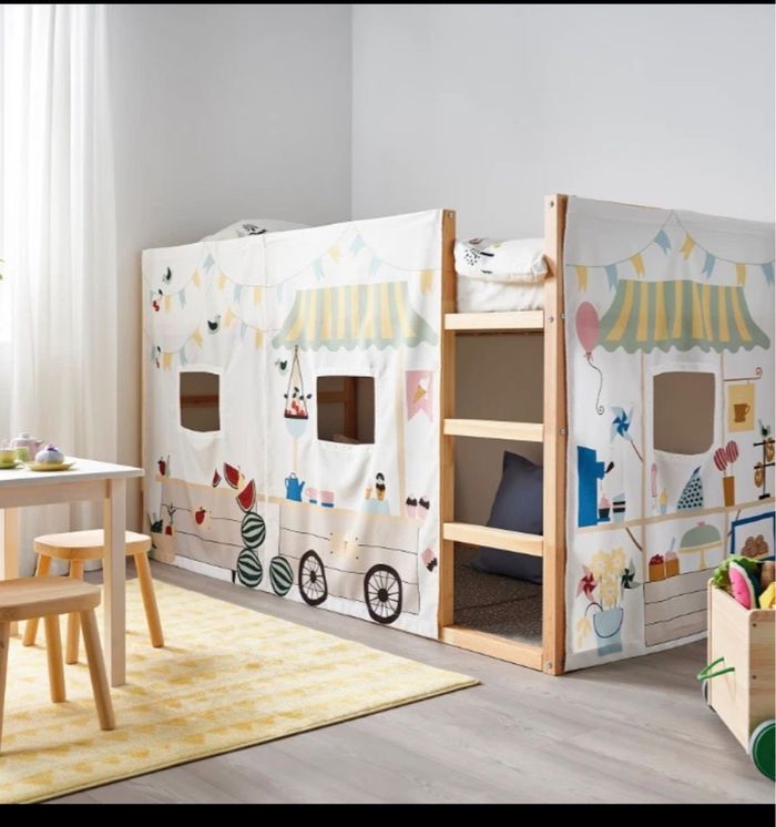 Neuf , rideau KURA pour faire une cabane sous un lit surélevé IKEA Très facile à mettre et à enlever . Dans son carton d’origine , jamais ouvert .