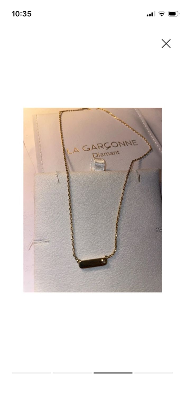 Collier La Garçonne neuf 42cm/40cm ajustable Plaqué or jaune sur argent + diamant Livré avec emballage d’origine et certification d’authenticité.