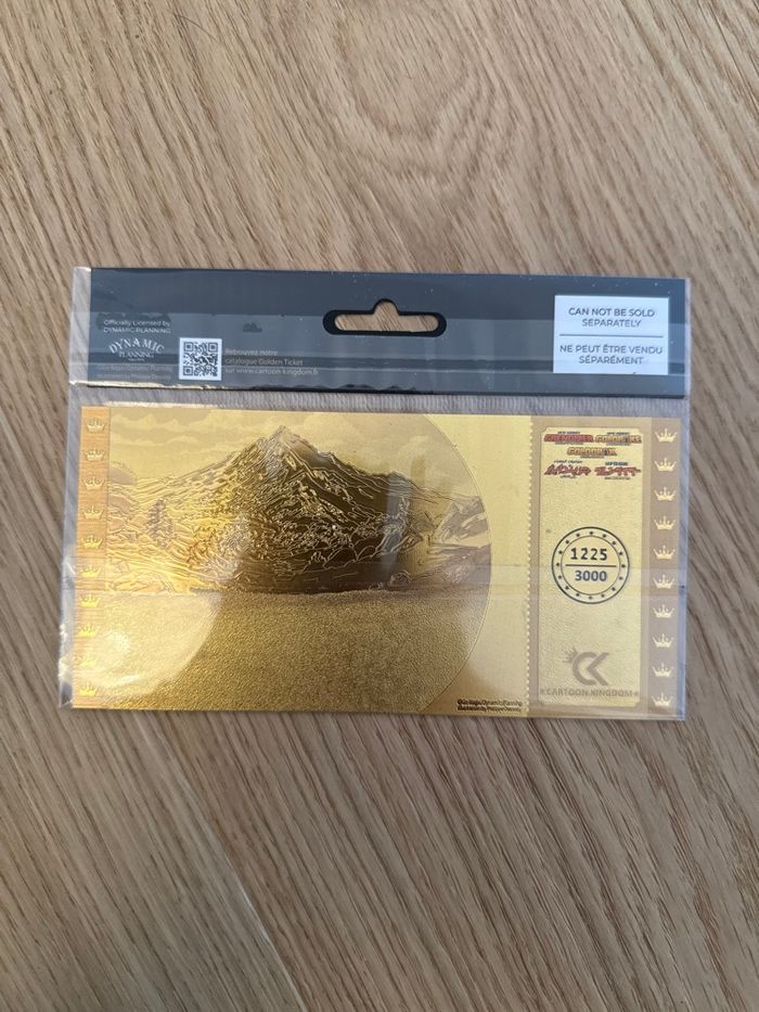 Objet collector promotionnel “Golden Ticket #02” inspiré de Goldorak / Grendizer. Édition limitée distribuée par la marque Grindizer. Numéroté 1225/3000 ✔ Neuf, sous blister d’origine ✔ Finitions dorées, visuel premium ✔ Idéal pour collectionneur ou fan de Goldorak ✔ Objet décoratif / collector (non consommable) Envoi rapide et soigné. Remise en main propre possible à Paris 3.