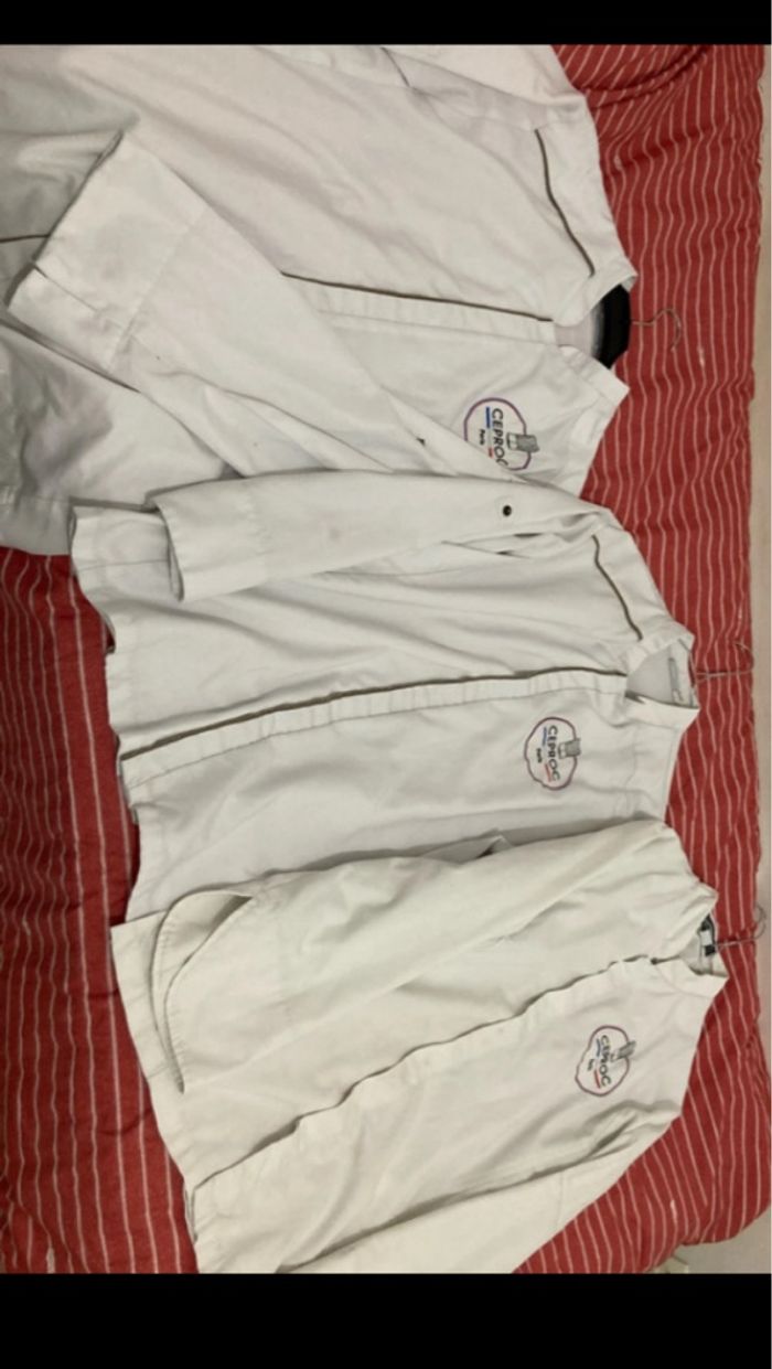 2 vestes taille L,une légèrement tachée voir photo 5 1 veste Xl Les 3 bragard