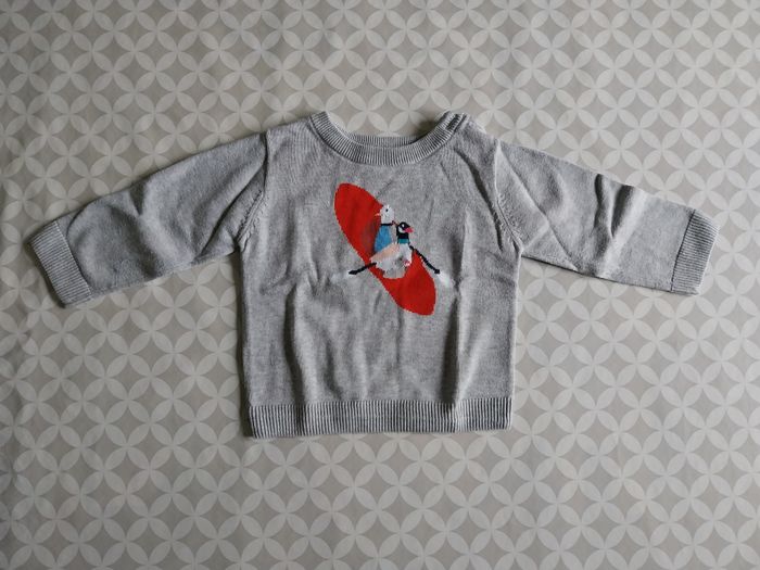Pull Jacadi 12 mois (74cm) gris – Intarsia Canoë & Animaux – État Nickel - photo numéro 1