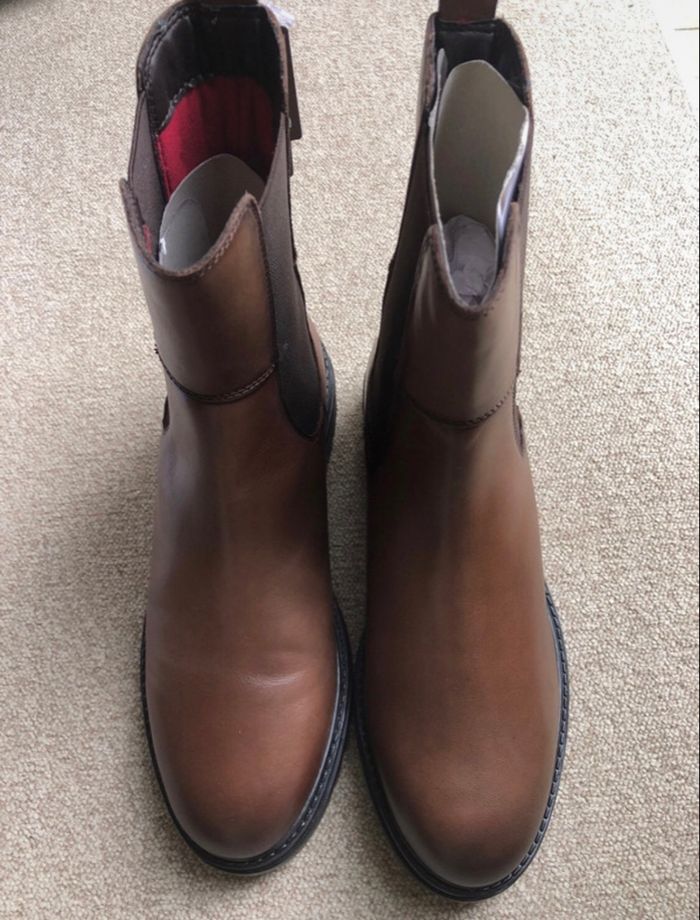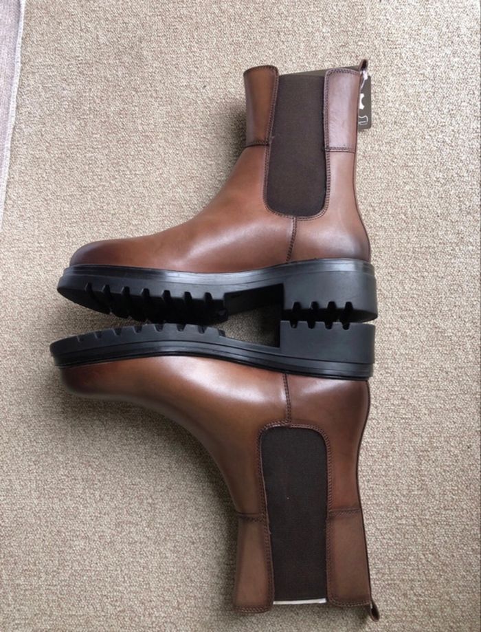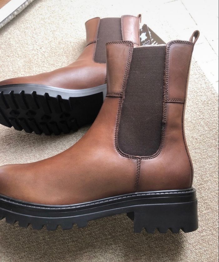 Neuf. Avec étiquette, dans leur boîte d’origine. Cuir
