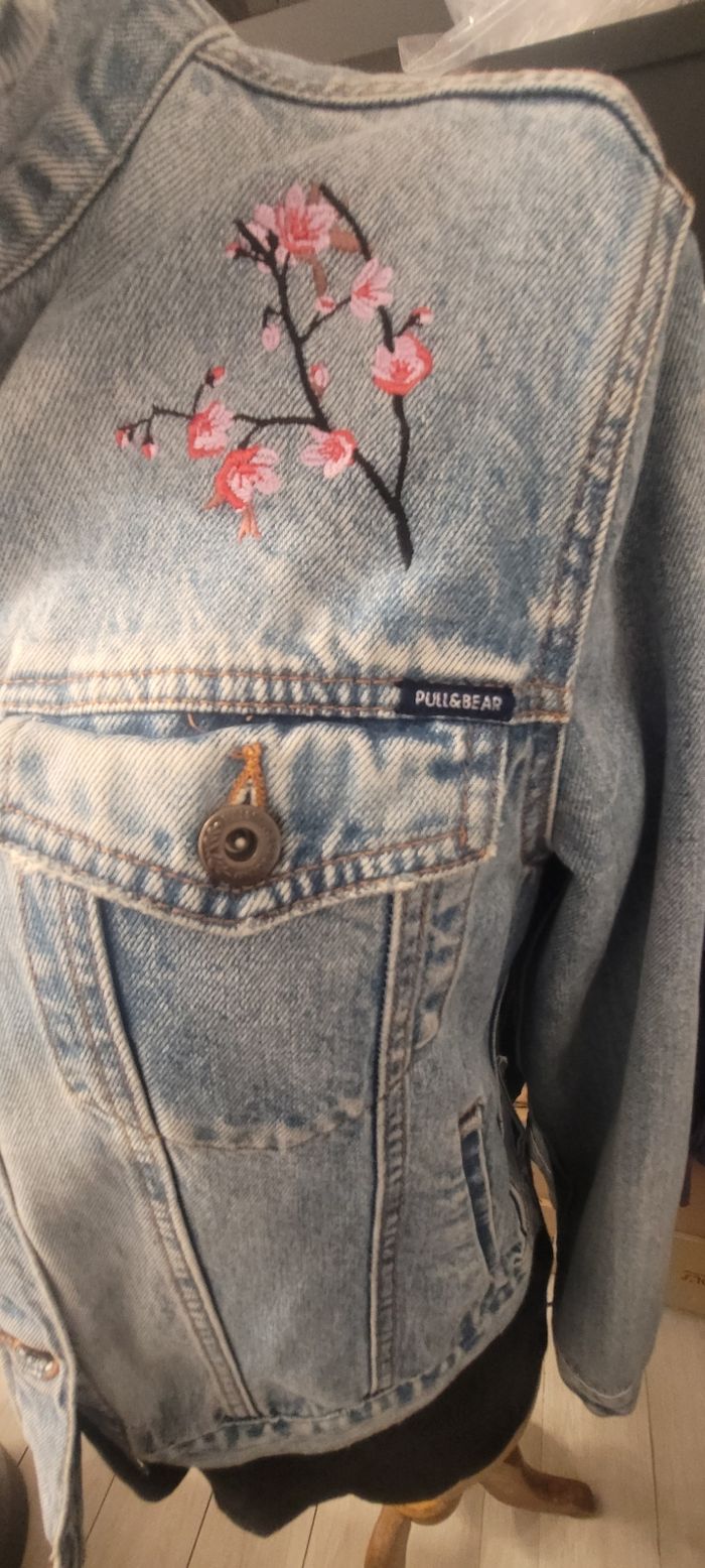Veste en Jean Pull&bear personnalisé broderies  - photo numéro 1