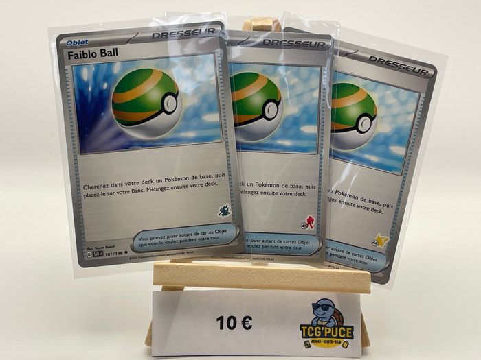 Triplette Faiblo Ball stamp - SVI 181/198 - Ecarlate & Violet en Français Carte officielle, issue directement de booster. État : Near Mint (NM) Produit authentique et certifié officiel Pokémon. Possible défaut d'usine (points blancs, point blanc de coupe, etc …) Envoi rapide & soigné.