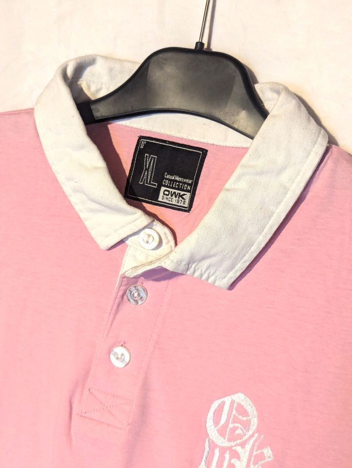 Polo "OWK" Rose de Couleur Unie avec le Nombre 25 sur une des Manches. Vêtement Tendance à la Mode pour les Hommes. ☑ Polo "OWK". ☑ Couleur "Unie". ☑ Nombre "25" Manche. ☑ Tendance - Mode. Spécifications: Matière: 100% Coton Taille du Polo: XL Couleur Dominante: Rose Réf: vea17