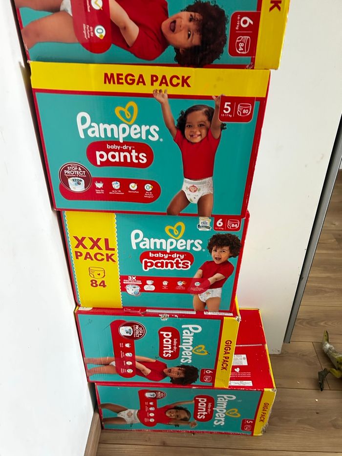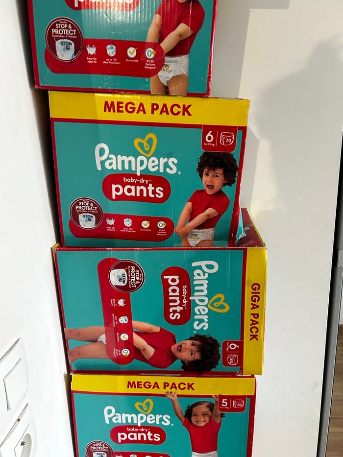 15 euros par paquet ! Peut importe le carton disponible au blanc mesnil : -2 Mega pack , taille 6 , 70 couches dans chaque paquets - 3 Giga pack , taille 6 , 84 couches dans chaques paquets, - 1 et demi : Mega pack , taille 5 , 120 couches ,m - 1 Giga pack , taille 5 , 96 couches ,