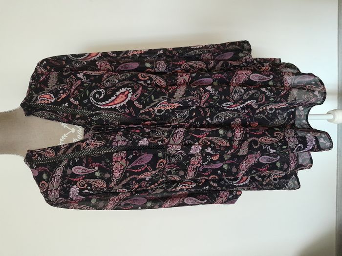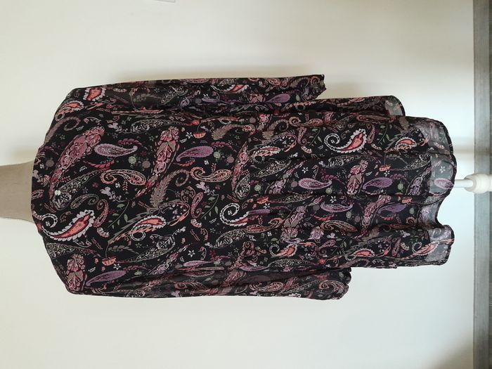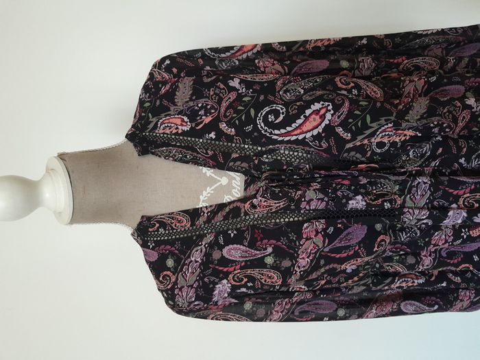 Robe, imprimé cashmire, col tunisien avec lacet, ajouré Longueur : 80cm Aiss / Aiss : 48cm Matière : 95 % Polyester, 5 % Elasthanne Marque : Liberto