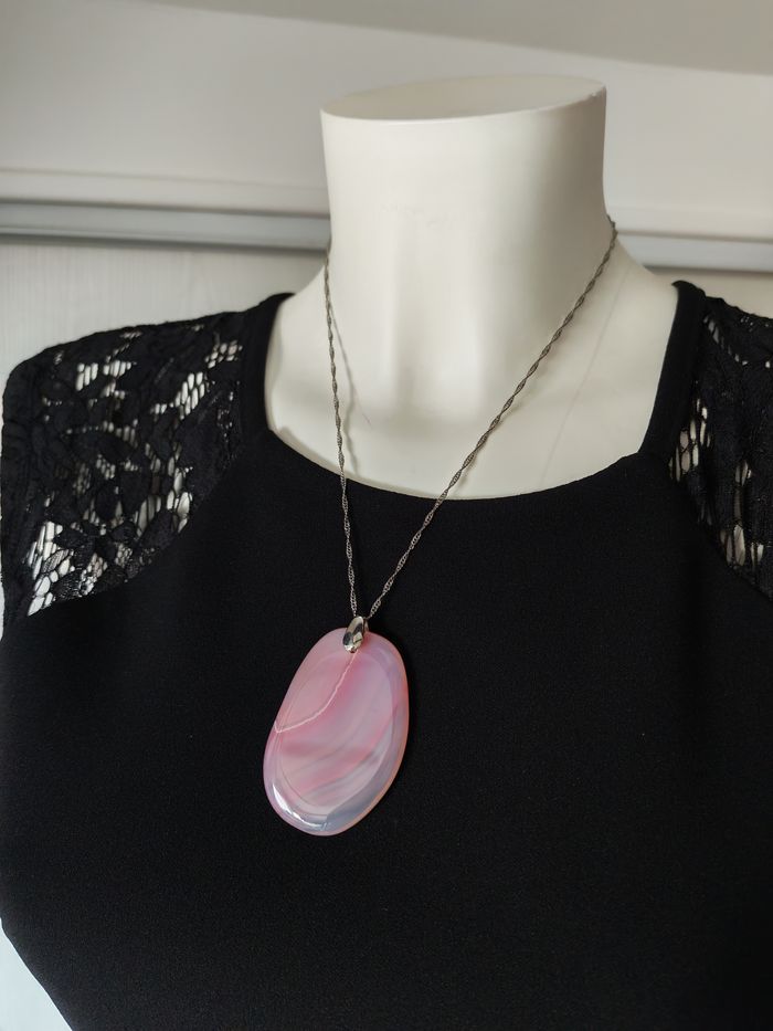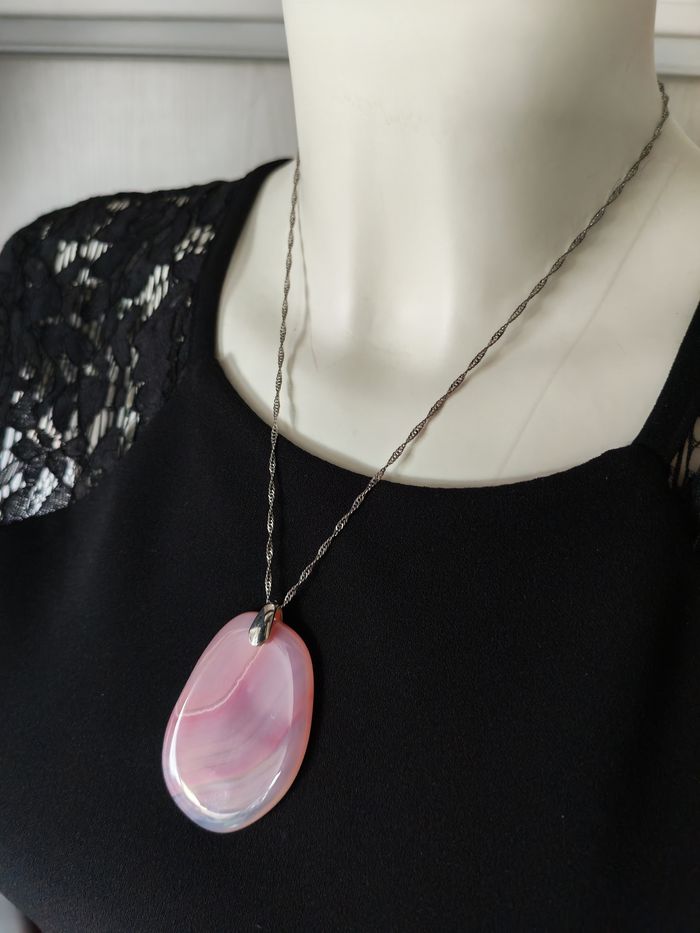 Chaîne torsadée en argent pendentif pierre agathe rose - photo numéro 2