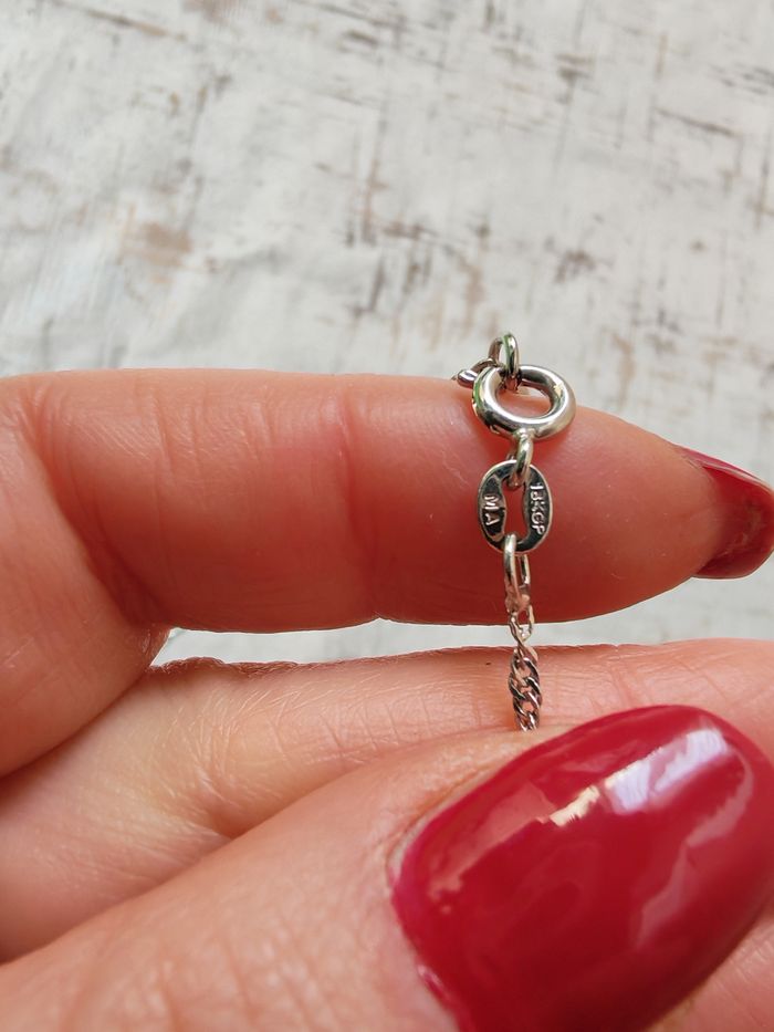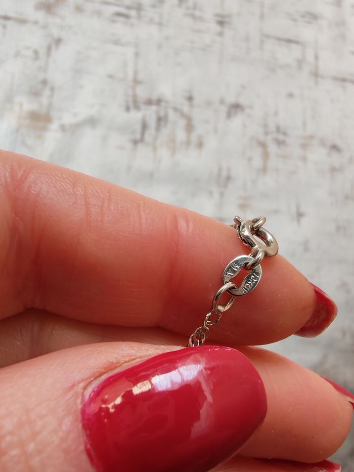Chaîne torsadée en argent pendentif pierre agathe rose, neuf sans emballage. Belle pèrre plate d'agathe sur une chaîne en argent portant la marque (pas très comprehensible) MA 18 ou 13 ou B KOP. Joli bijou, chaîne à rallonge. Dimensions : Longueur avec la rallonge : 46 cm Epaisseur : 2 mm Taille pendentif : 5,5x4x3 mm Poids : 27g