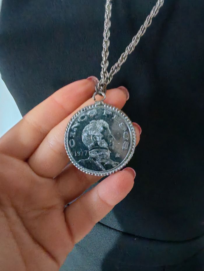 Sautoir chaîne  à pendentif pièce de monnaie Vicente Guerrero du Mexique 1977 cinco pesos - photo numéro 1