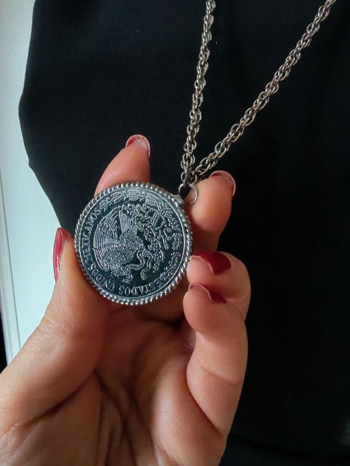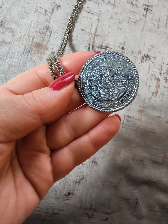 Sautoir chaîne  à pendentif pièce de monnaie Vicente Guerrero du Mexique 1977 cinco pesos - photo numéro 5