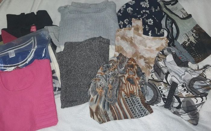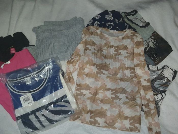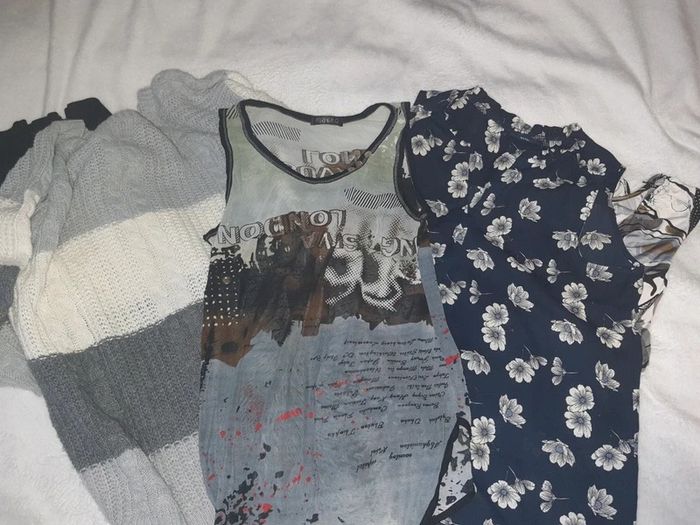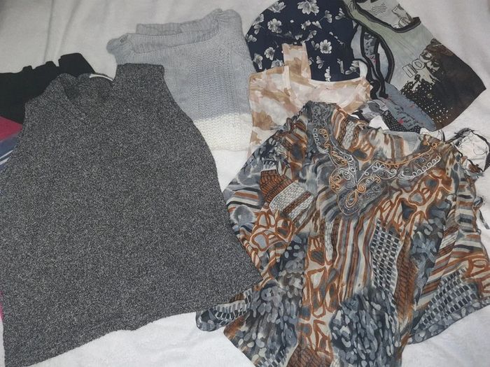 Lot de 10 hauts 4 pulls dont 1 neuf 2 débardeurs 2 blouse sans manche 1 manche longue 1 pull sans manche Envoi rapide et soigné 🤩 #melu_femme38 #lotfemme #lot38