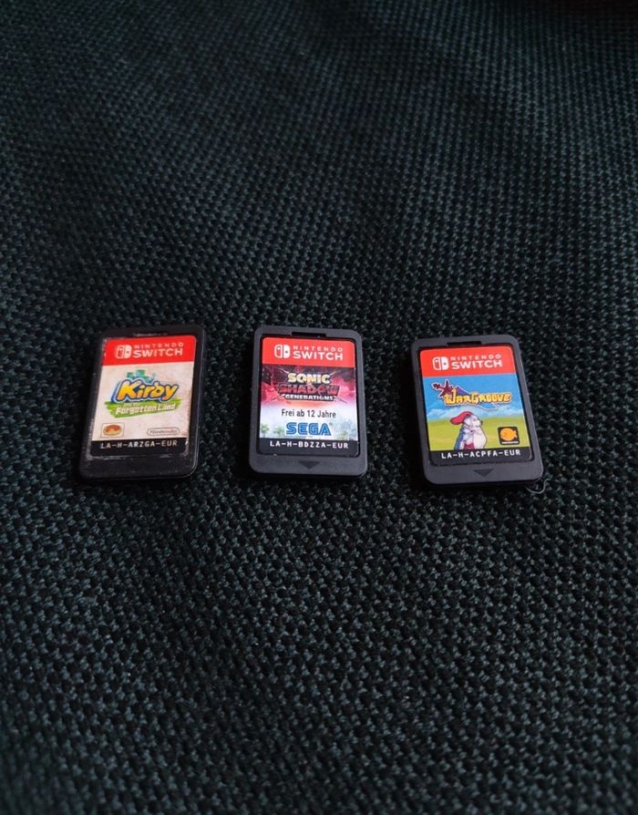 Lot de 3 jeux Nintendo Switch comprenant Kirby et le monde oublié Wargroove Et Sonic x Shadows Generations En bon état mais sans les boîtes.
