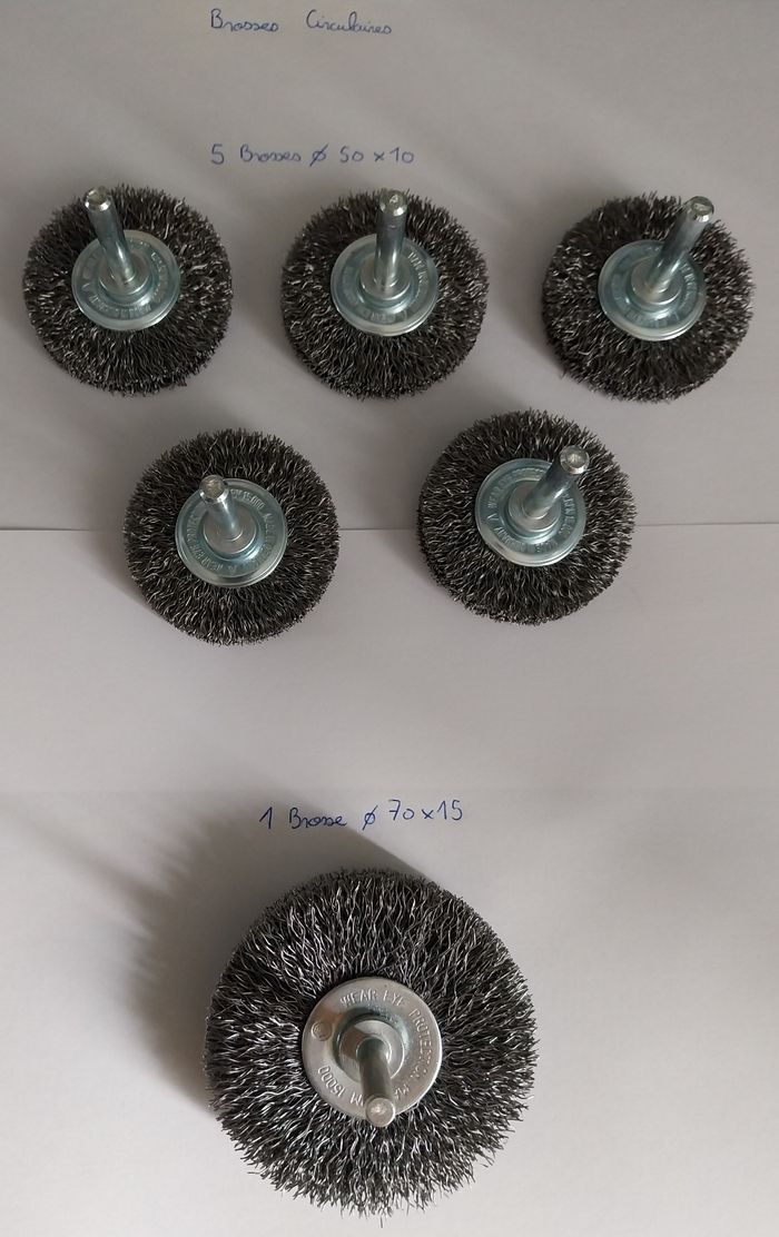Vends lot de 6 brosse circulaire - 5 brosses Diamètre 50×10 - 1 brosse Diamètre 70×50 État neuf #bricolage #brosse