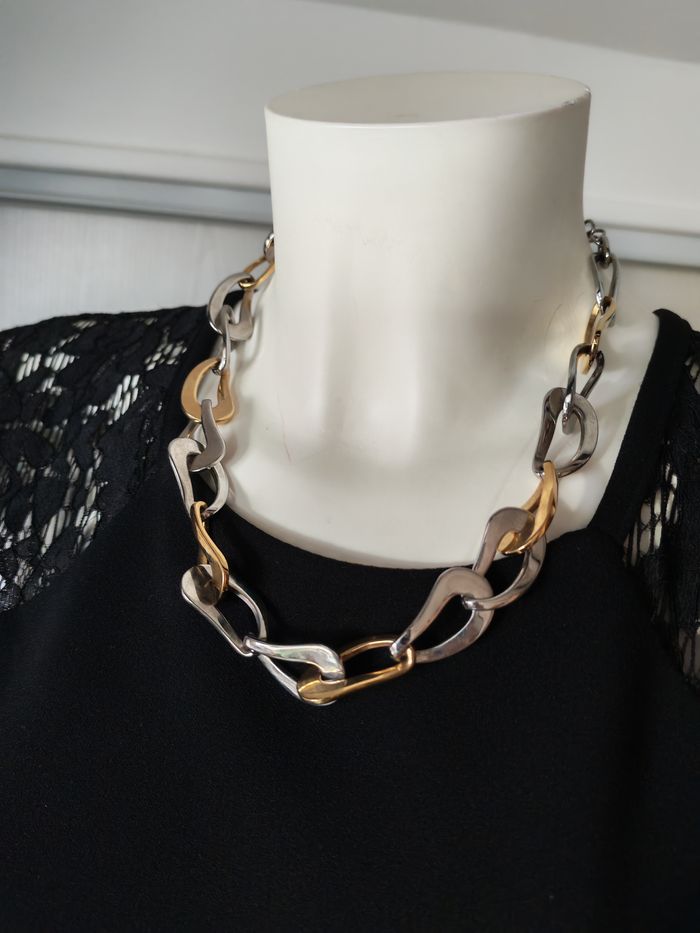 Chaîne gros maillons tendance ras de cou argenté et doré XO - photo numéro 5
