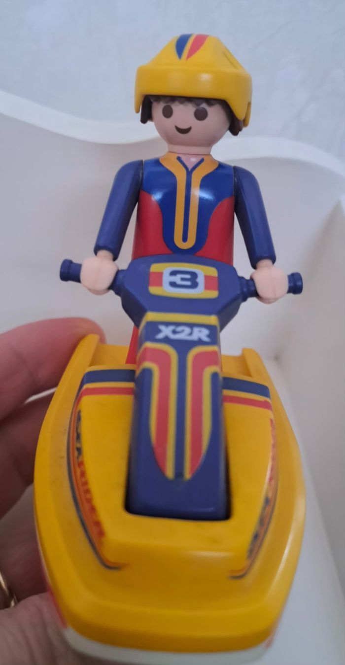 Vends Playmobil vintage 3065 Pilote de jet ski jaune Année 1999 Quille métallique piquetée