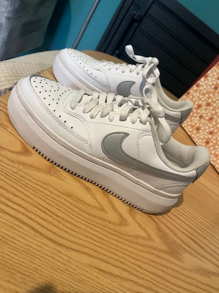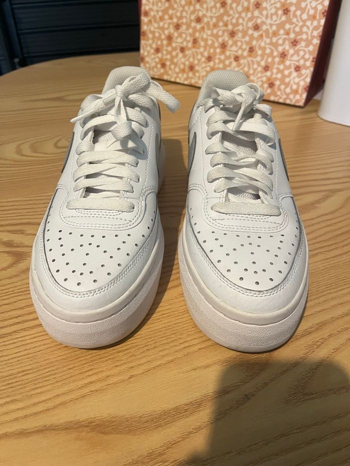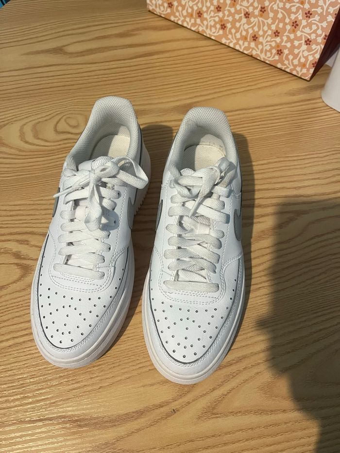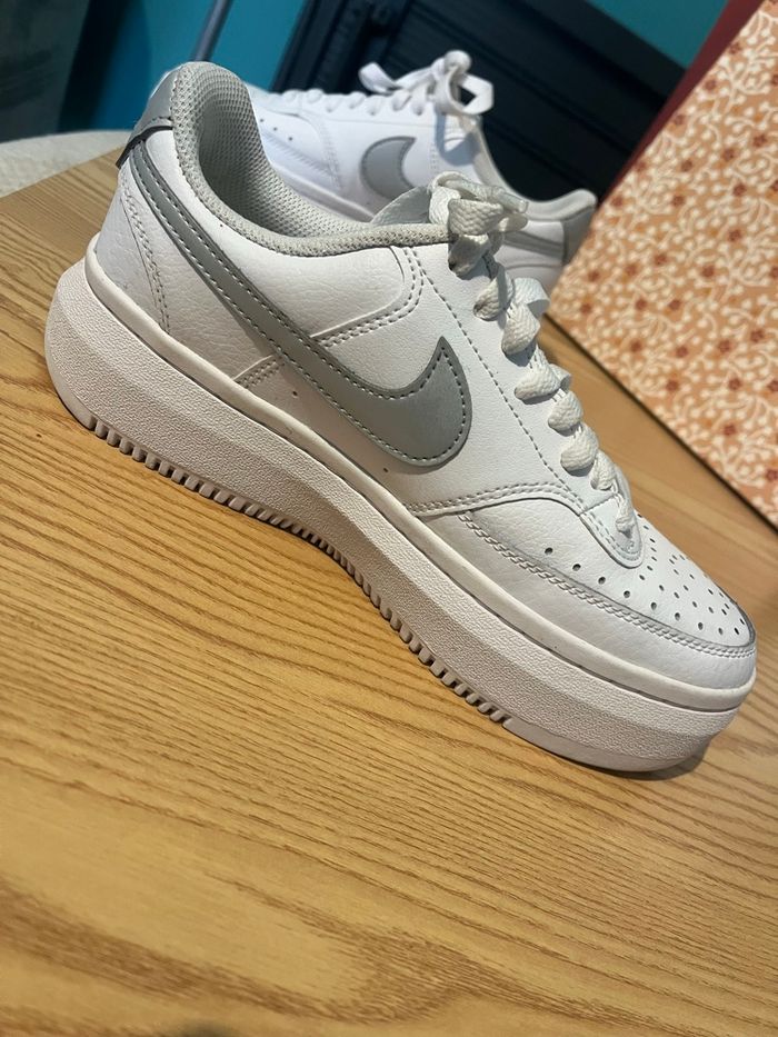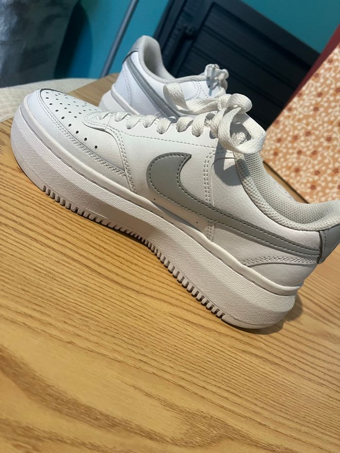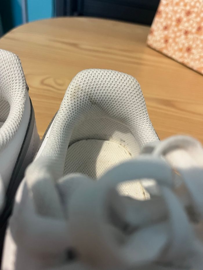 Gris et blanc Air force Très peu porté : comme neuf Un défaut visible (à l’intérieur au niveau de la cheville : cf derniere photo) N’hésitez pas à faire des lots 😊