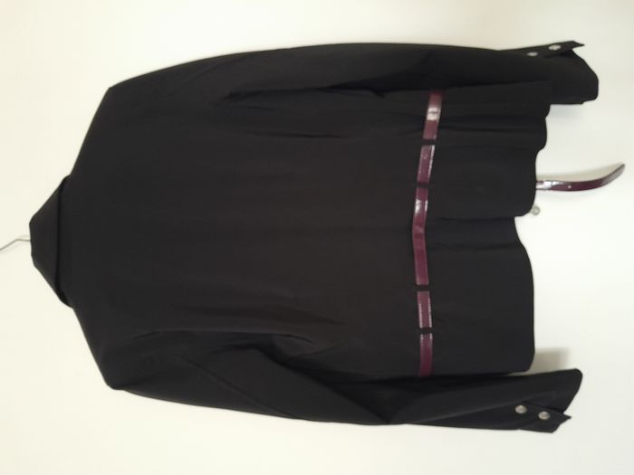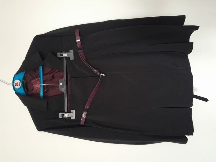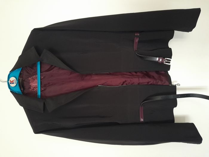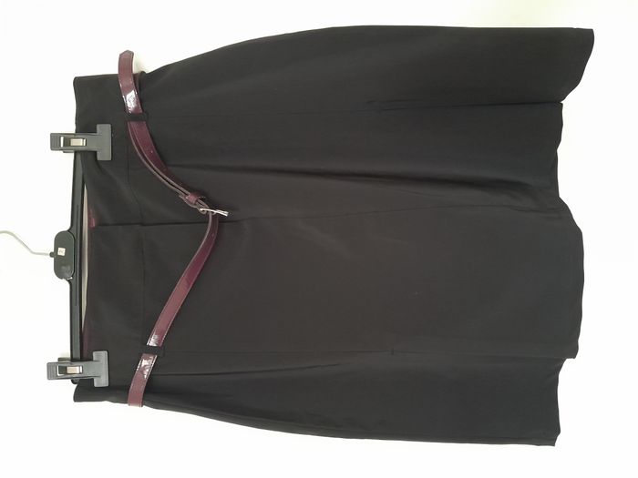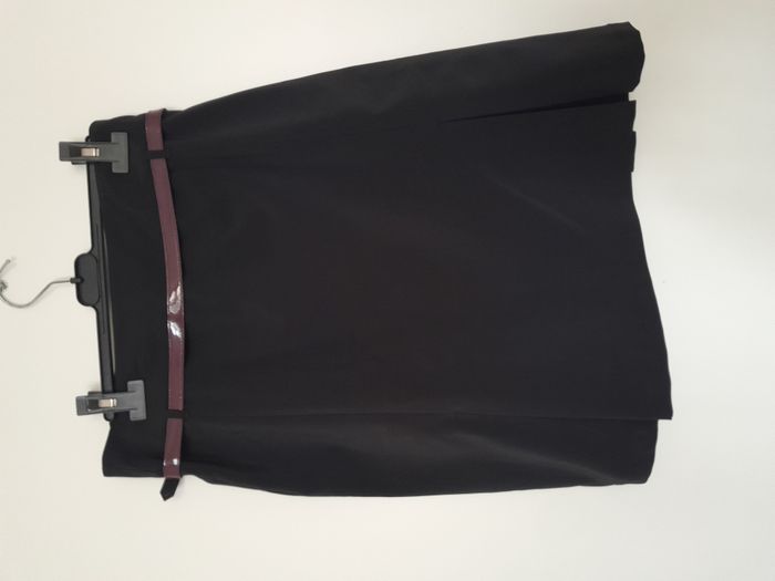 Ensemble tailleur, veste + jupe, entièrement doublé satin bordeaux, bouton sur manche, attache fermeture éclair devant, jupe évasé, attache fermeture éclair + bouton devant Longueur : 60cm pour la veste, 56cm pour la jupe Aiss / Aiss : 51cm pour la veste, Taille en cm 38 pour la jupe Matière : 95 % Polyester, 5 % Elasthanne Marque : Pastille Menthe