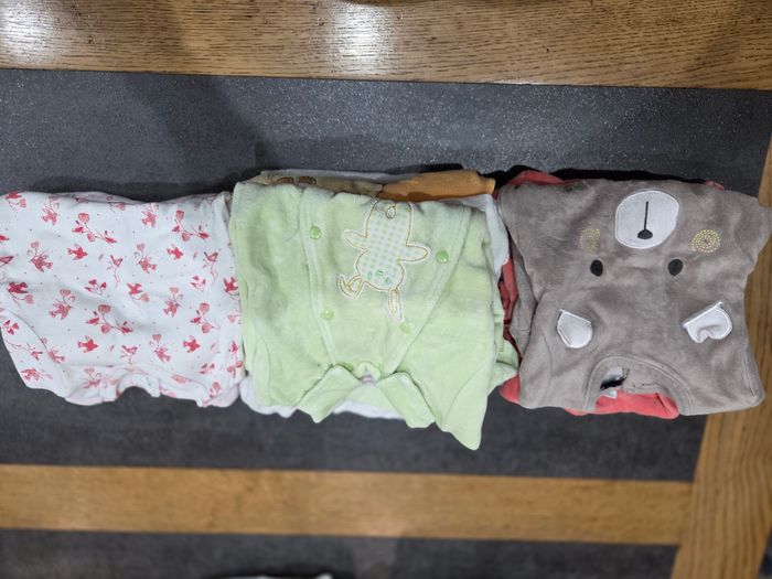 Lot de 16 bodys 7 pyjamas polaires 3 pyjamas coton 1 gilet polaire 1 gilet tricoté