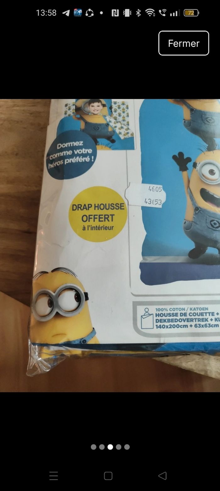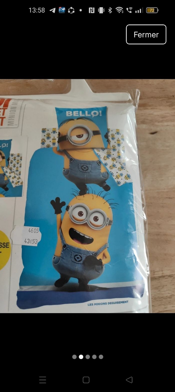 Parure housse de couette taie oreiller et drap housse. Neuf emballé. Moi moche et méchant Dimensions en photo