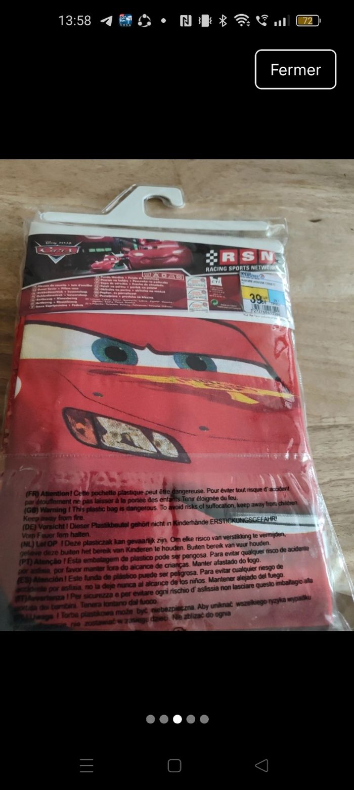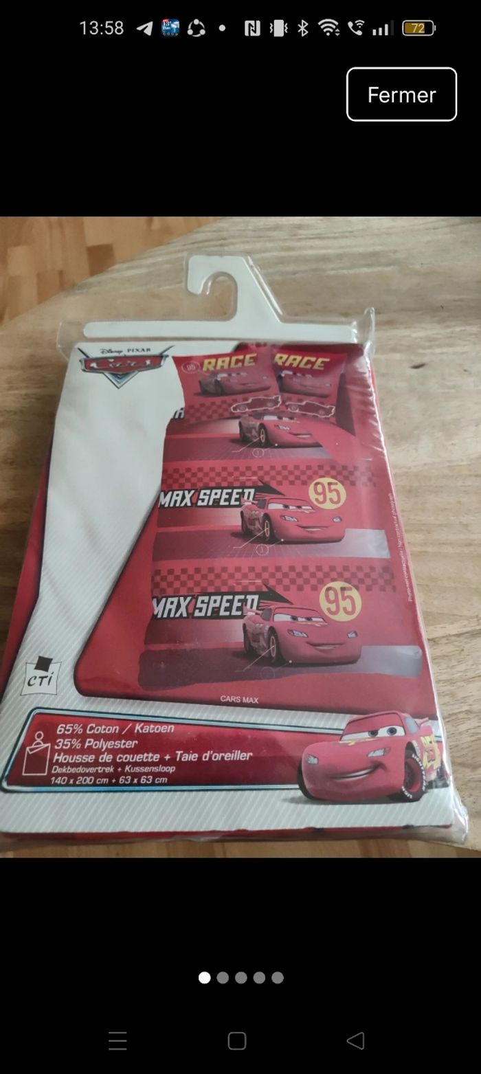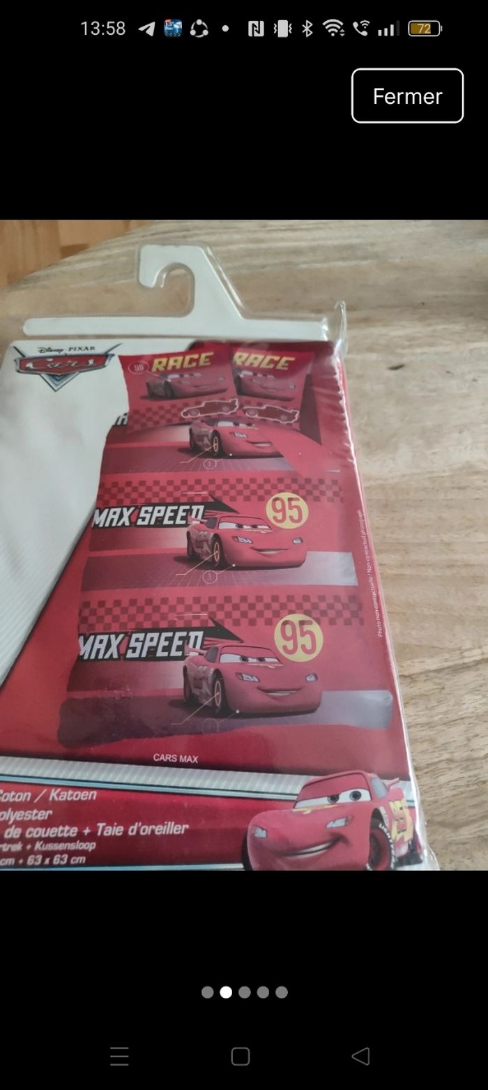 Parure cars , housse de couette et taie d'oreiller. Dimensions en photo, pour lit 1 place