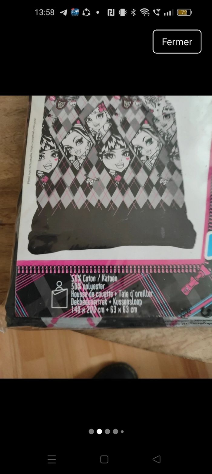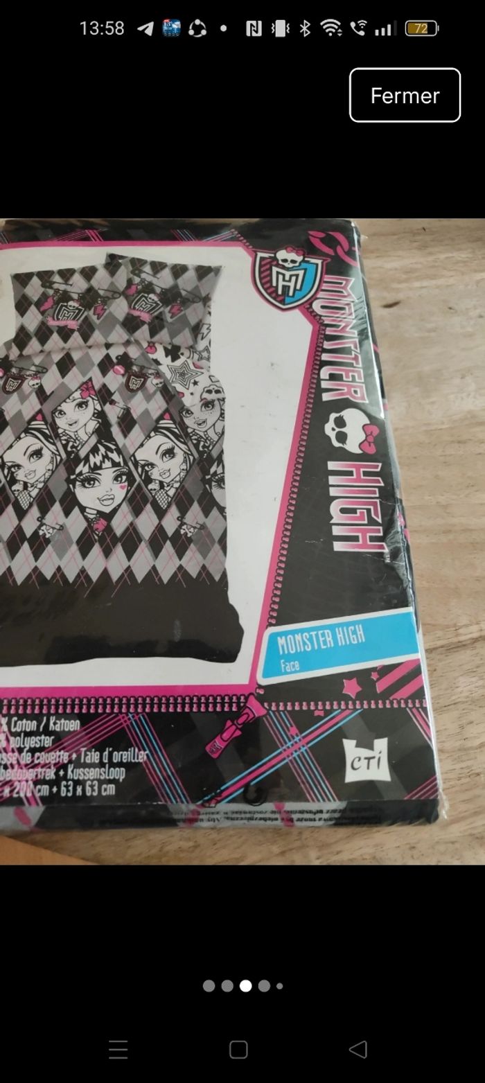 Parure housse de couette et taie d'oreiller pour lit 1 place. Dimensions en photo Monster High