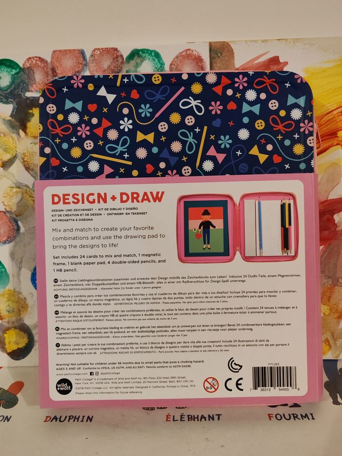 À vendre, ce magnifique kit de dessin créatif "Design + Draw - Fashionistas" de la marque éco-responsable Petit Collage. État : Neuf, jamais déballé (encore scellé). Le kit comprend : 24 pages de figurines à habiller. 4 planches de pochoirs. 1 planche d'autocollants (stickers). 10 crayons de couleur de qualité. Le tout dans une jolie boîte en métal réutilisable, facile à transporter. Idéal pour un cadeau d'anniversaire ou pour occuper les enfants de façon créative (5 ans et +). 📦 Envoi rapide et soigné garanti.