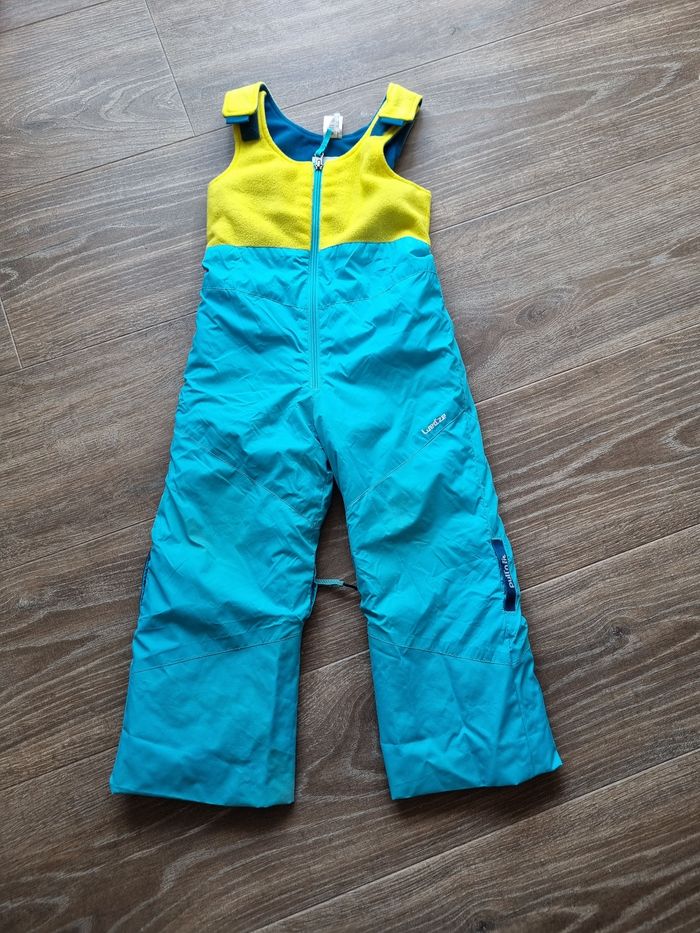 Salopette en bon etat Quelques signe d'usure et accros au bas des jambes, voir photos A servi et peut encore servir quelques années Taille grand 3/4 ans Marque wedze (decathlon)