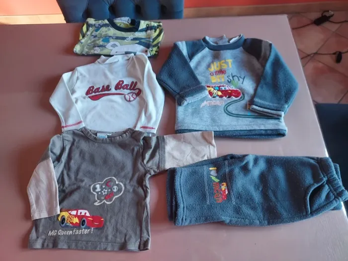salopettes, pantalons, veste à capuche, gilet, pulls, hauts manches longues, pyjamas, bodies... différentes marques: petit pirate, vertbaudet, kiabi, tape à l'œil, kitchoun, devil child, orchestra, kimadi, disney,