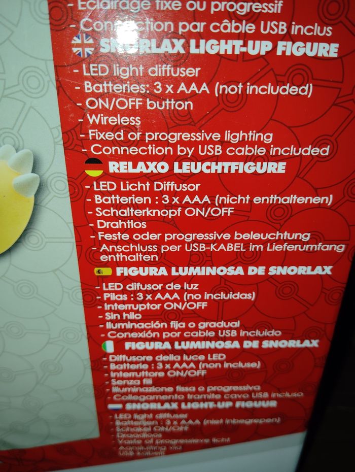 Figurine lumineuse pokémon Ronflex, boîte neuve scellée.
