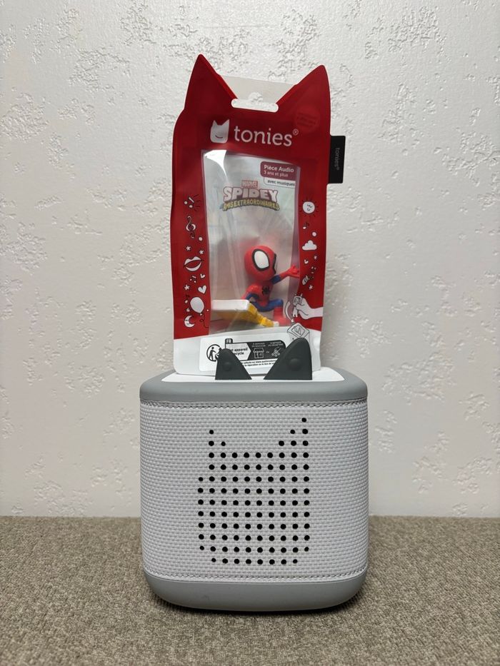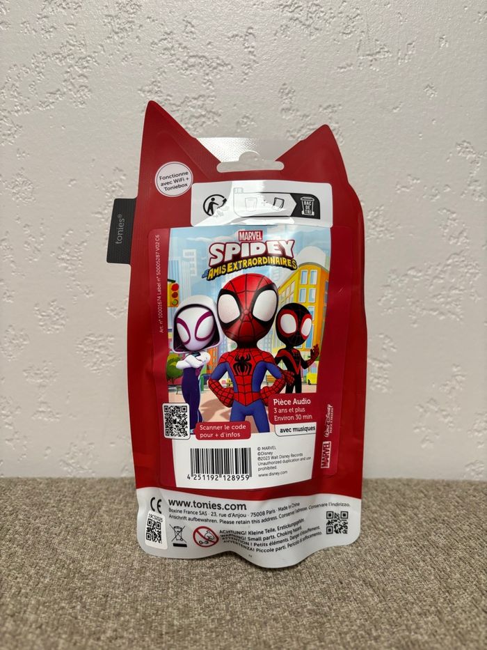 Vends la figurine Tonie “Spidey”, neuve. Peter, Gwen et Miles partent à la fête foraine avec Tante May pour profiter des manèges et déguster de délicieux corn dogs végétariens… jusqu’à ce qu’Electro décide de semer le chaos ! Les trois amis enfilent alors leurs costumes de Spidey, Ghost-Spider et Spin pour protéger tout le monde et stopper les plans d’Electro. Une aventure dynamique, pleine d’action, parfaite pour les petits fans de super-héros ! 📦 Compatible avec les deux versions de la Toniebox 🚚 Envoi rapide État : Neuf