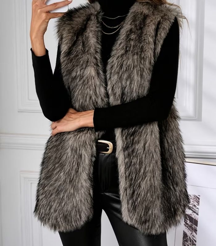 Veste sans manches fausses fourrure taille 2XL Neuf sans étiquette Fermeture par un crochet, pas de poches