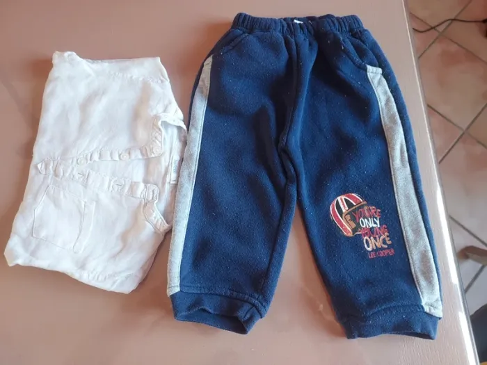 pantalons, sweat, veste, hauts manches longues, chemise,... différentes marques: orchestra, vertbaudet, tout compte fait, mini malice, bout'chou, mini gang, kimbaloo, la redoute, kimadi, picco mini......