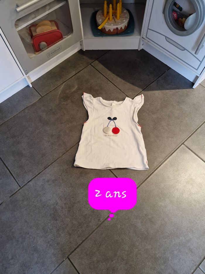 T-shirt manches courtes fille 👧 Taille 2 ans Marque : Obaïbi Blanc Réductions sur les lots activé ☺️ Bac3