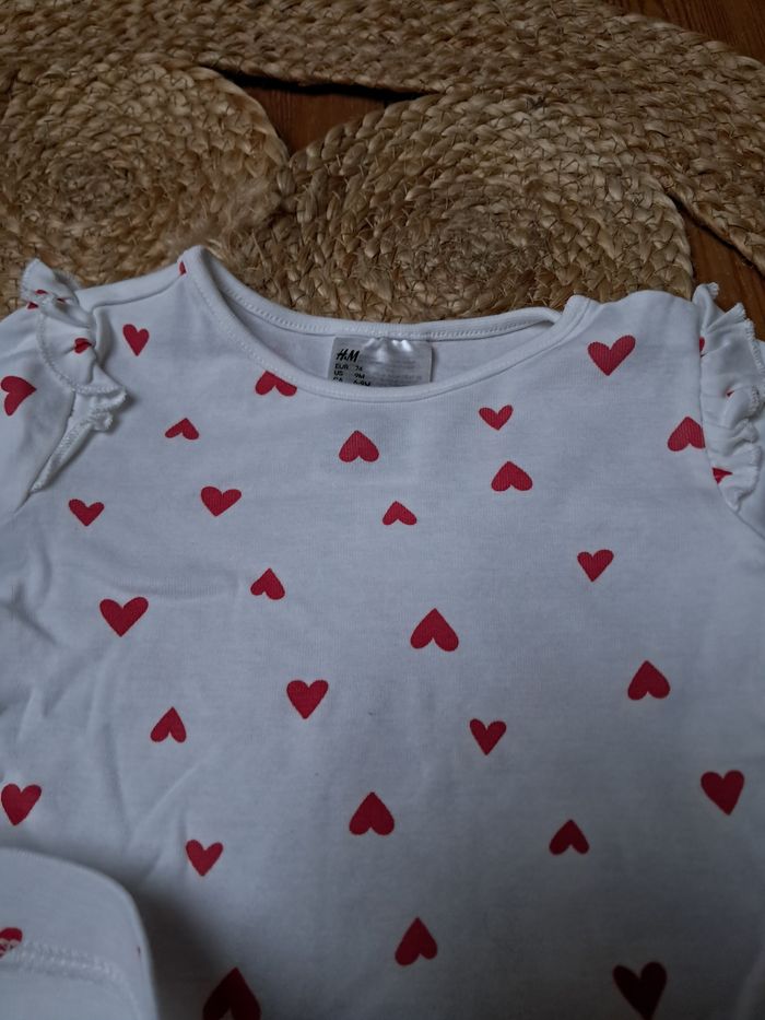 ⚠️ merci de bien lire l'annonce et de bien regarder les photos Magnifique pyjama de deux pièces motifs cœur En très bon état peu porter Taille: 6/9mois 74cm Marque : h&m Couleur : blanc/ rouge 100% coton Le pyjamas a était acheté neuf et porter par un seul enfant Les vêtements son sécher à l'air libre pas de sèche linge Envoie uniquement avec mondial relay ⚠️ je ne réponds pas aux offres trop bases merci de respecter Je ne suis pas responsables des frais d'envoi ni des protection d'acheteur Maison non fumeur mes avec deux chats