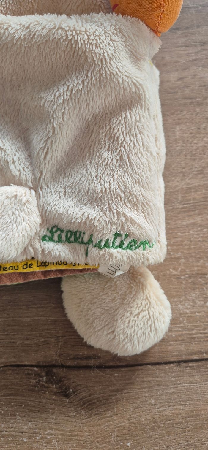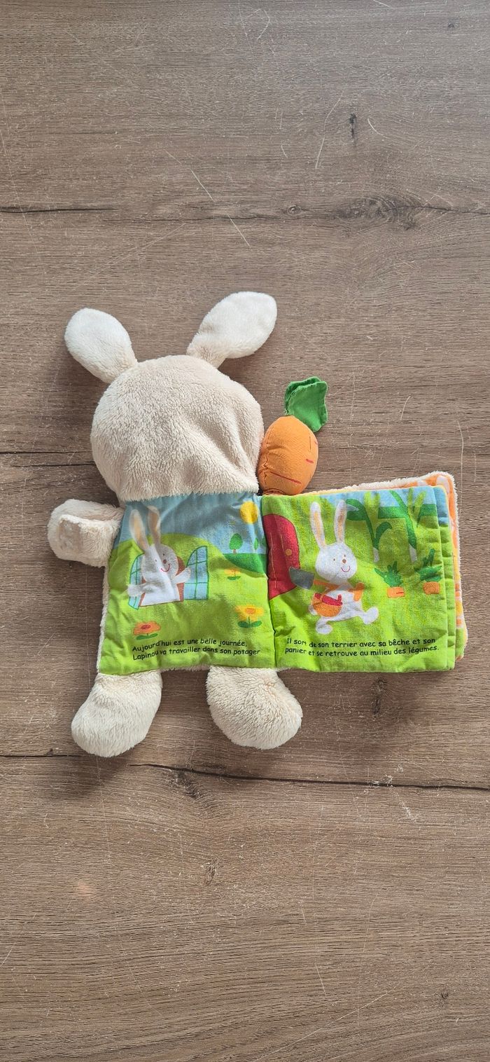 Peluche doudou en forme de lapin avec livre d'éveil en tissus Lilliputiens Très bon état