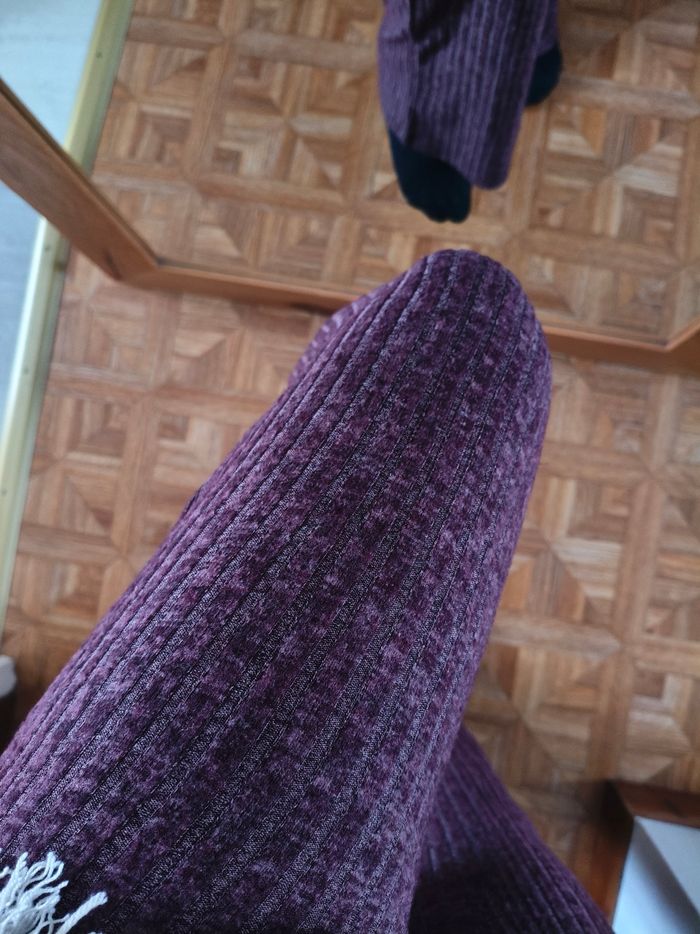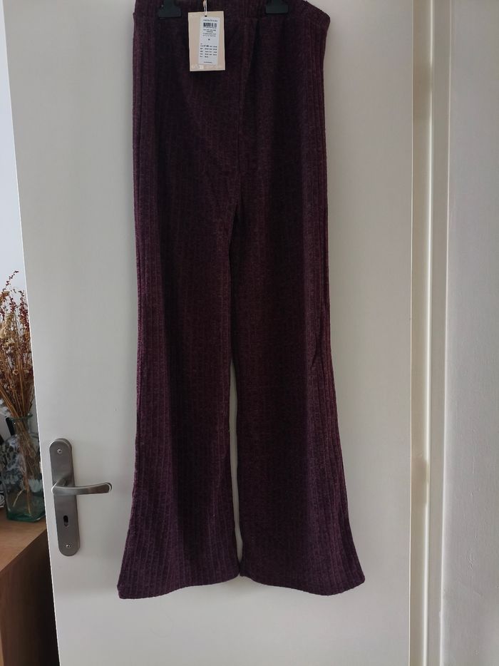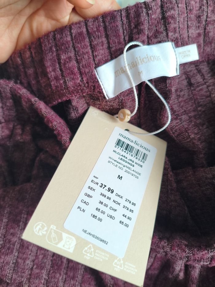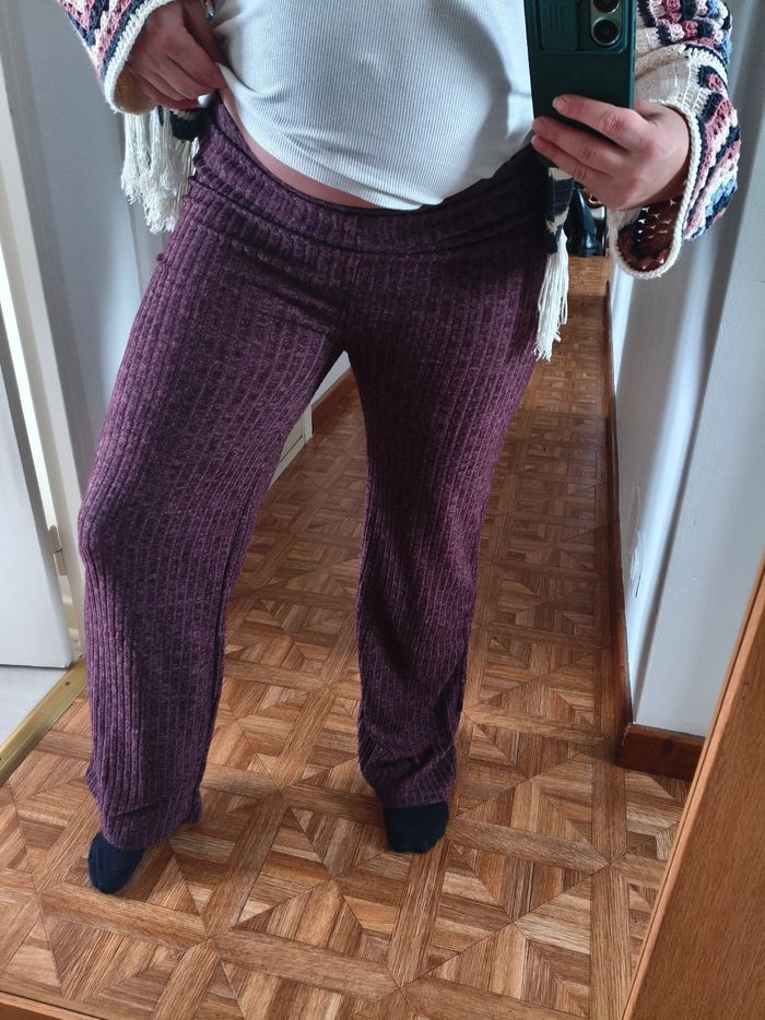 Pantalon d'intérieur pour grossesse maternité, peut être porté comme un legging. Matière ultra douce, très agréable comme un velours fin, elle est élastique. Pas de bandeau. Je le vends car il me va trop juste malheureusement pour ma fin de grossesse. Neuf avec étiquette, marque Mamalicious taille M. Couleur lie de vin/bordeaux/violet. Il est vraiment fait pour être confortable pour rester à la maison dans une tenue toute douce.