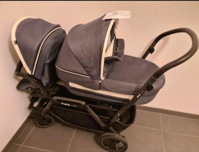 Vend poussette double peg perego duette, idéale pour les parents de jumeaux ou enfants très rapprochés. Complète : 2 nacelles, 2 assises, 2 cosy ISOFIX avec leur base. La poussette est assez longue. Très maniable. Pour plus d'informations, merci de m'envoyer un message ☺️