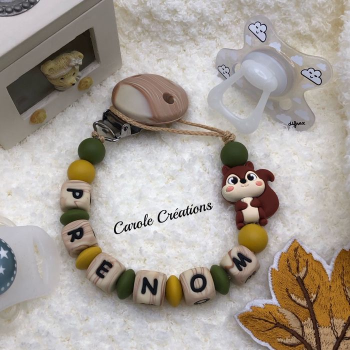 Attache tétine personnalisé entièrement en silicone écureuil