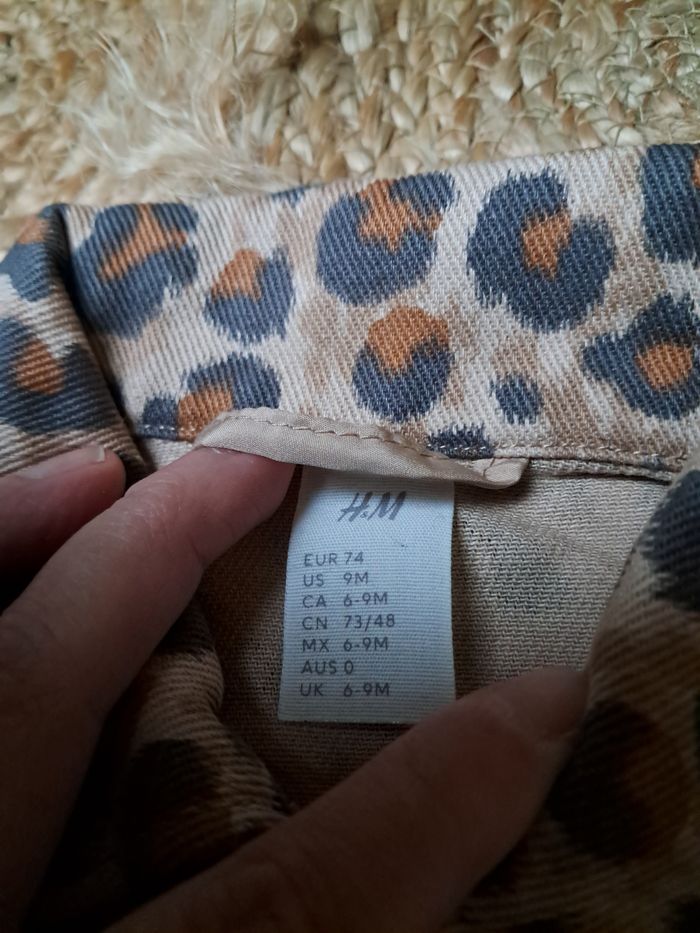 ⚠️ merci de bien lire l'annonce et de bien regarder les photos Magnifique veste de mi saison motifs léopard En excellent état peu porter Taille: 6/9mois 74cm Marque: h&m Couleur : marron/ noir/ beige 100% coton La veste a était acheté neuf et porter par un seul peu de fois Les vêtements son sécher à l'air libre pas de sèche linge Envoie uniquement avec mondial relay ⚠️ je ne réponds pas aux offres trop bases merci de respecter Je ne suis pas responsables des frais d'envoi ni des protection d'acheteur Maison non fumeur mes avec deux chats