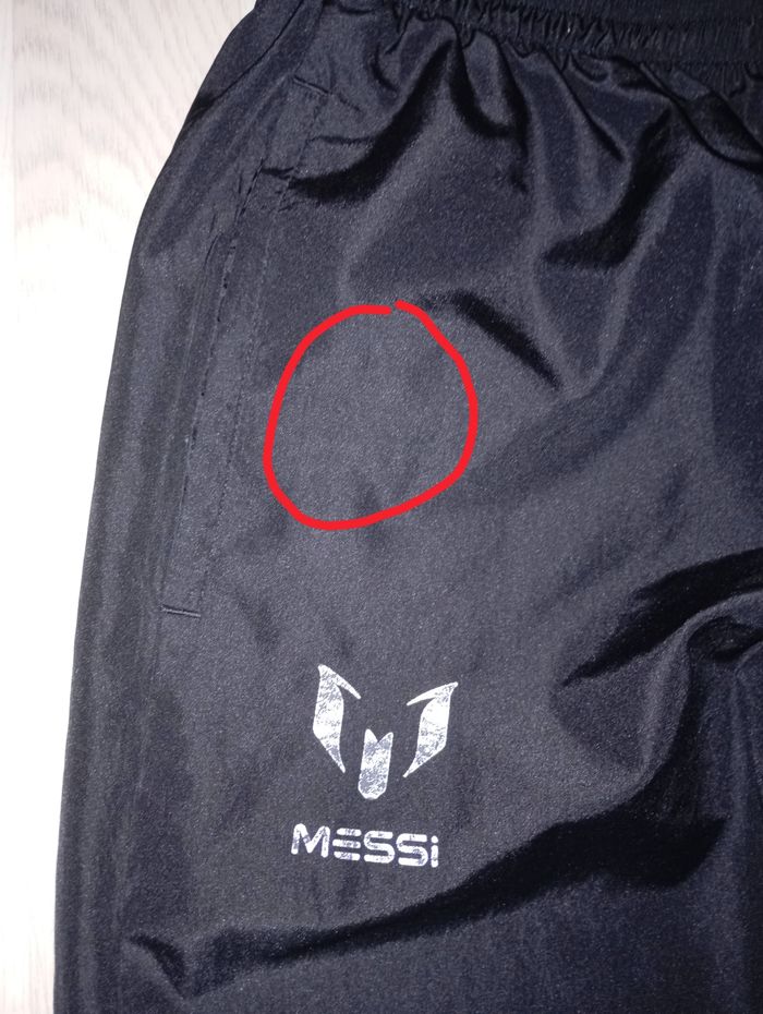 Bas de jogging en nylon noir Modèle : Messi Marque : Adidas T. 11-12 ans Très bon état général, juste une legere embrasure au niveau de la poche droite (voir dernière photo)