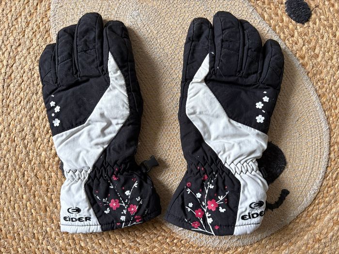 Ensemble complet ski femme Composé de : * Veste Eider taille 38 - En bon état, a fait plusieurs saisons les dessins s’effacent et les parties blanches ont un peu jauni * Pantalon Eider taille 40 - En excellent état, peu porté * Gants Eider - En très bon état, les dessins s’écaillent un peu * Gants fins tactiles Weedze - Taille S - En bon état, paumes légèrement jaunies * Chaussettes Go sport - Taille 37/38 Envoi soigné via mondial Relay ou relais colis N’hésitez pas si vous avez des questions :)