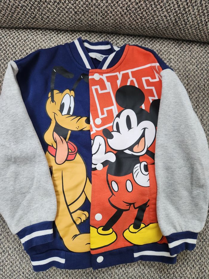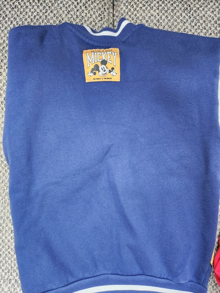 2 hauts dessins Mickey 1 gilet type bombers en parfait état 1 pull capuche avec 2 marques de stylo